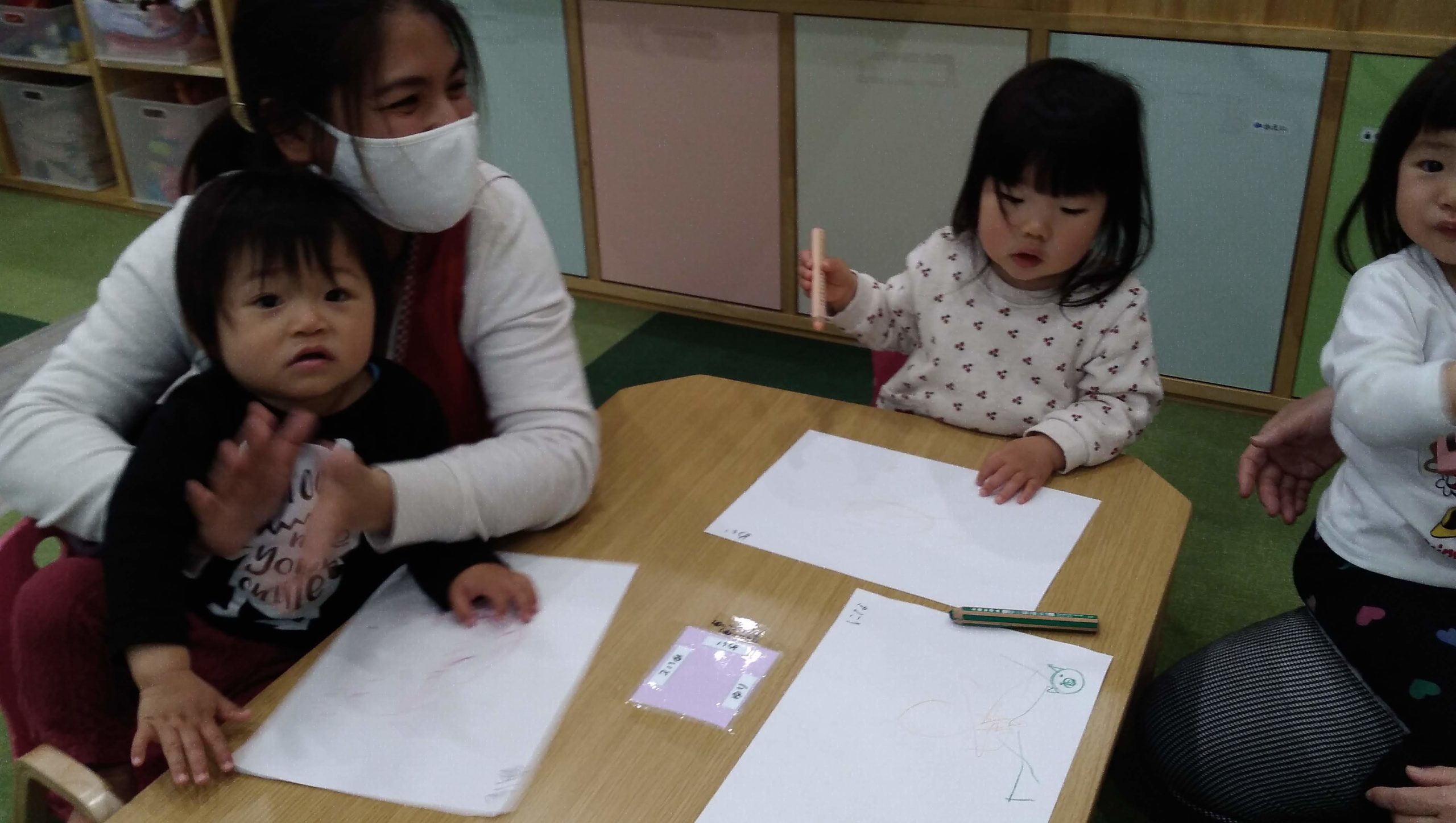 2歳児子どもたちにはクラス内で発表活動も行います。自分の作った作品を友だち、保育者等に見守られがら、一生懸命取り組んだ作品を手に持ち話してくれます。