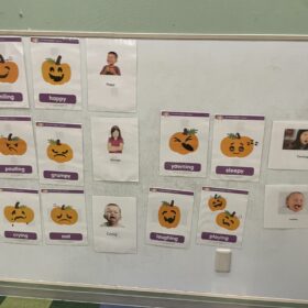 We’ve been learning about the song “Rain rain go away ” for 3 weeks and they’ve been enjoying the hand gestures while singing this song. So today at Sakura Class, we gave our little learners an activity that is related to our theme this month. We put the lyrics and their names on the song. They put lines under the clouds. We also had counting lesson about bugs and song story.