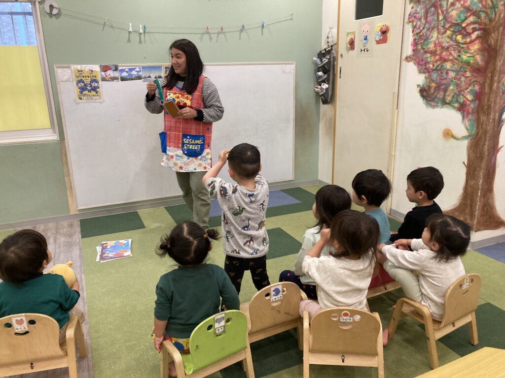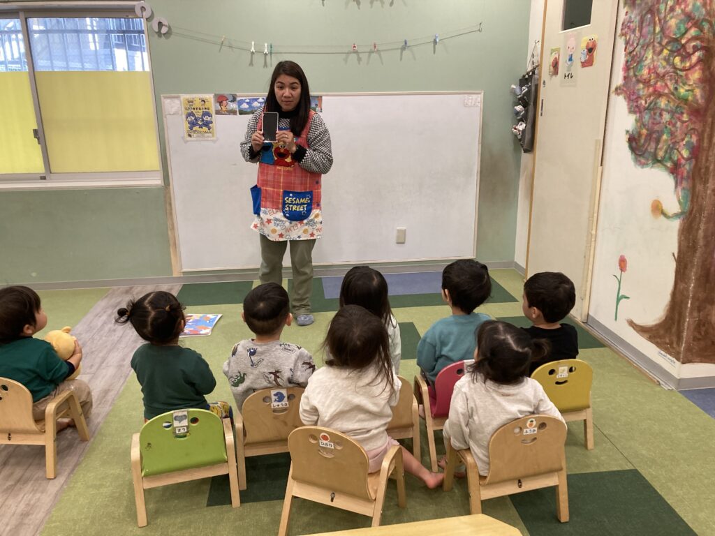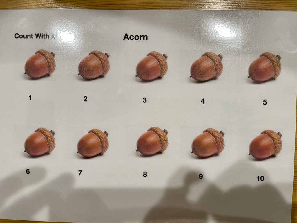 As part of the activity, we recite the colors and sang “I see something Yellow”. I challenge them to find items that has color yellow. Sakura class and Sumire Class was very excited to participate. We also count Acorns from 1-10. They perfectly pronounced the numbers well and sang the song ” How is the weather “song.