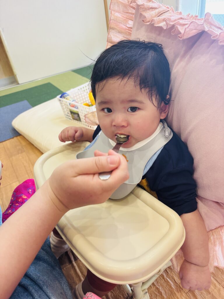 一口目は、口から少し出してしまいましたが、徐々に食べてくれるようになりました♡