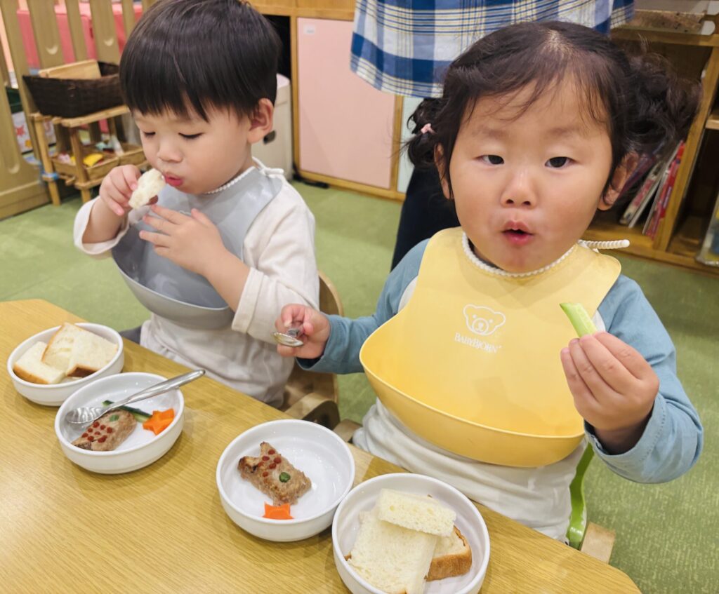 かじりとることで必ず顎を使いますし、自分の口の大きさに合わせた適量を学ぶ機会にもなります。