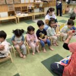 This is how we started on our first time in a while lesson. They focus and imitate teacher in speaking the words. After a while, they started to play and touch flashcards to explore their interest.