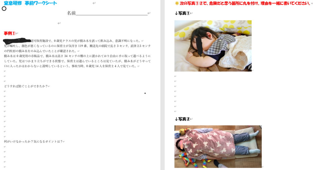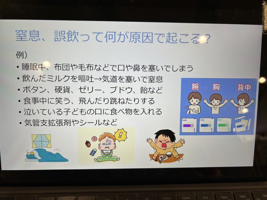 研修では、まず窒息が起こるメカニズムから、窒息や誤飲が起こる原因となるもの、どんな症状が起こるかを学びます✅