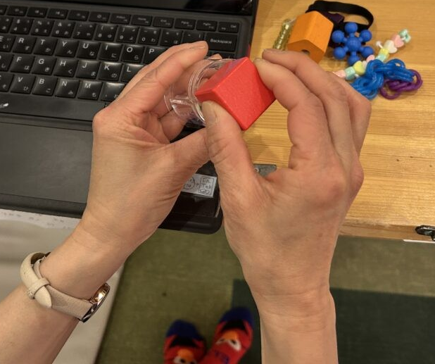 今回は、「誤飲チェッカー」というものを使用し、危険なおもちゃはどれかな?と学びます✍