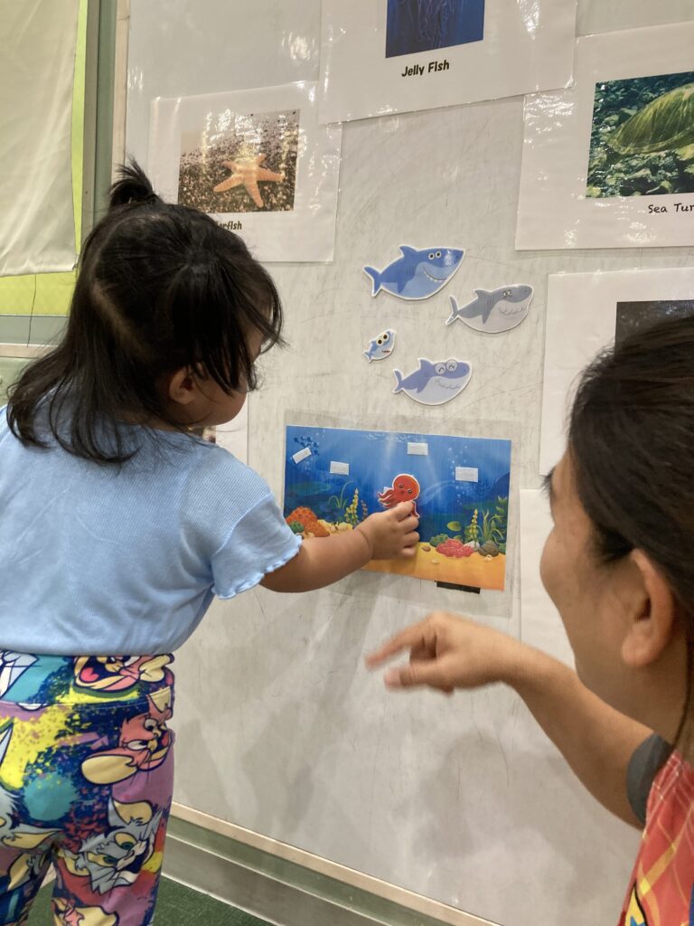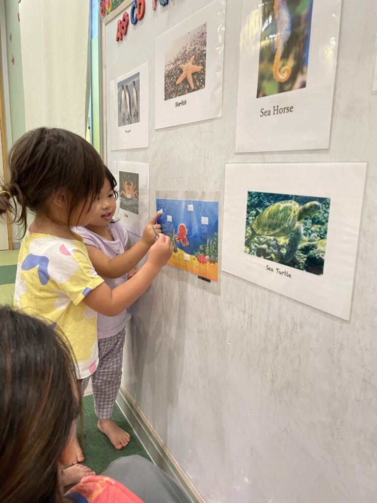 Summer is the perfect time to have family trips and visiting Aquariums is one of the list . It provides a unique blend of fun and education so we prepare flash cards of aquarium animals. They were familiar with it and some friends can say it in English too. I guess they remember it from the last year’s lesson too. They were also happy to participate and was very proud of themselves whenever we praise them .