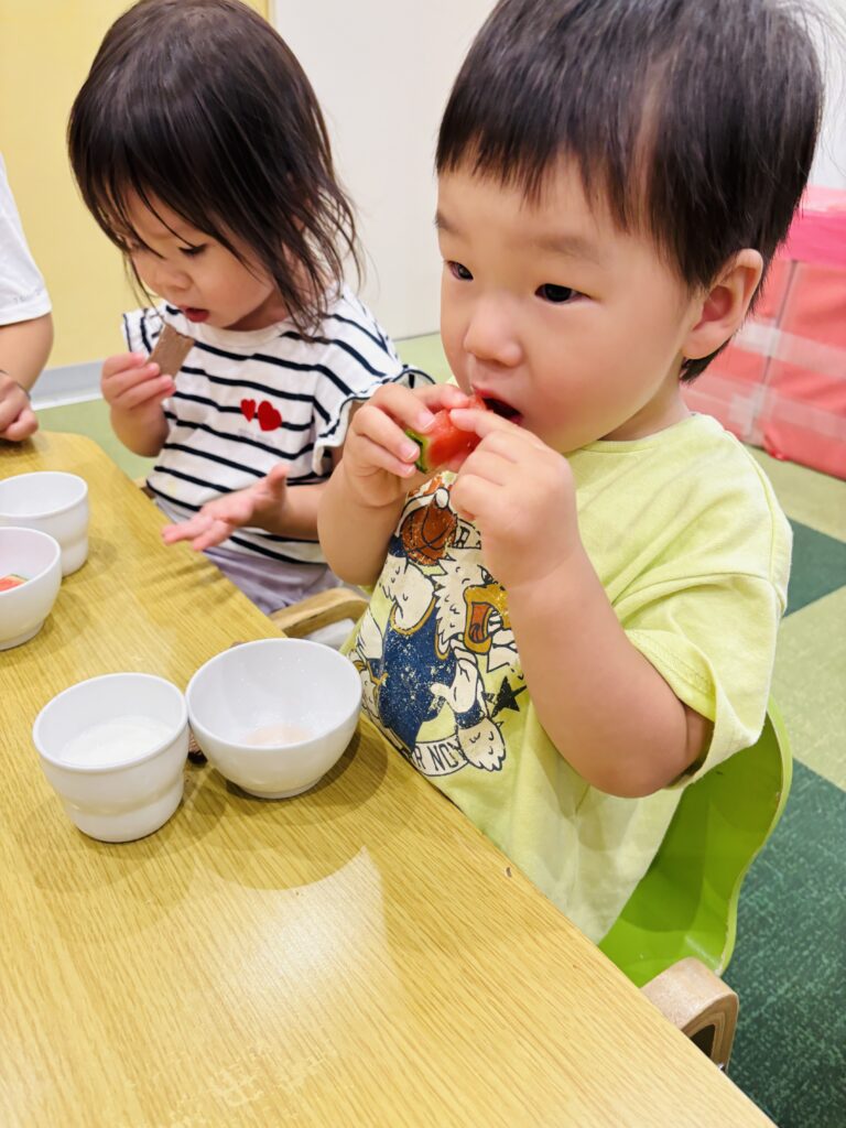 園でも水分補給をこまめに行い、涼しい環境でゆったりと過ごすようにしています😊