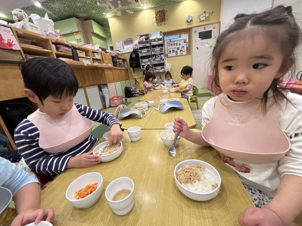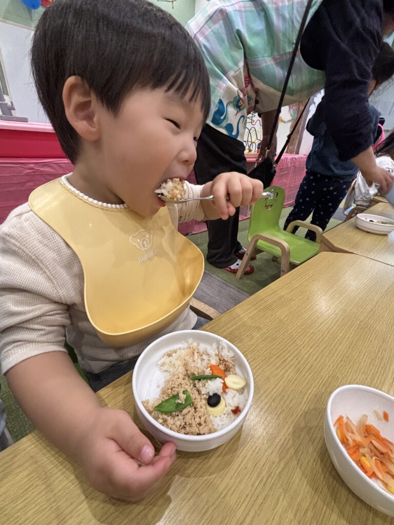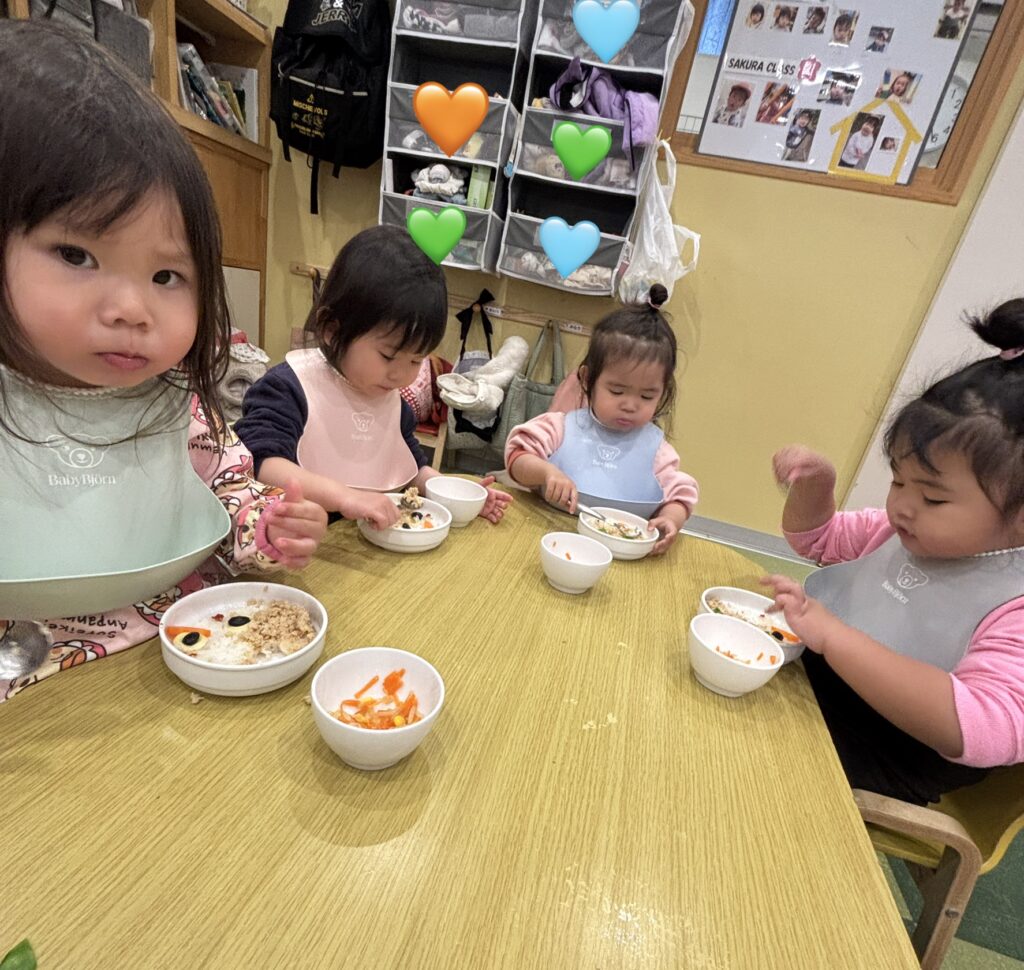 ツノの部分の絹さや、目の部分の黒豆は、苦手な子が多かったかな、、?