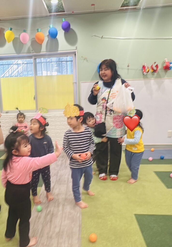 豆まきに向けて風船を鬼の絵に当ててみたり、楽しそうな様子が伝わってきました✨