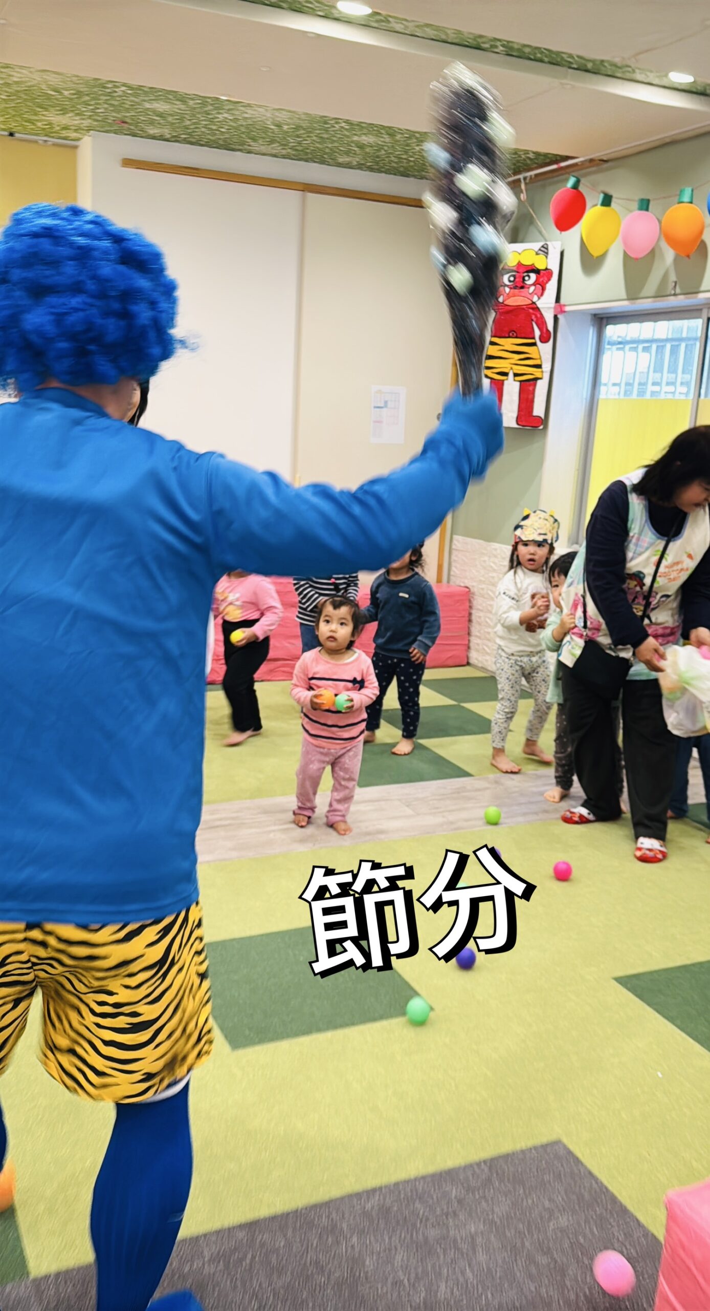 豆まきに向けて風船を鬼の絵に当ててみたり、楽しそうな様子が伝わってきました✨